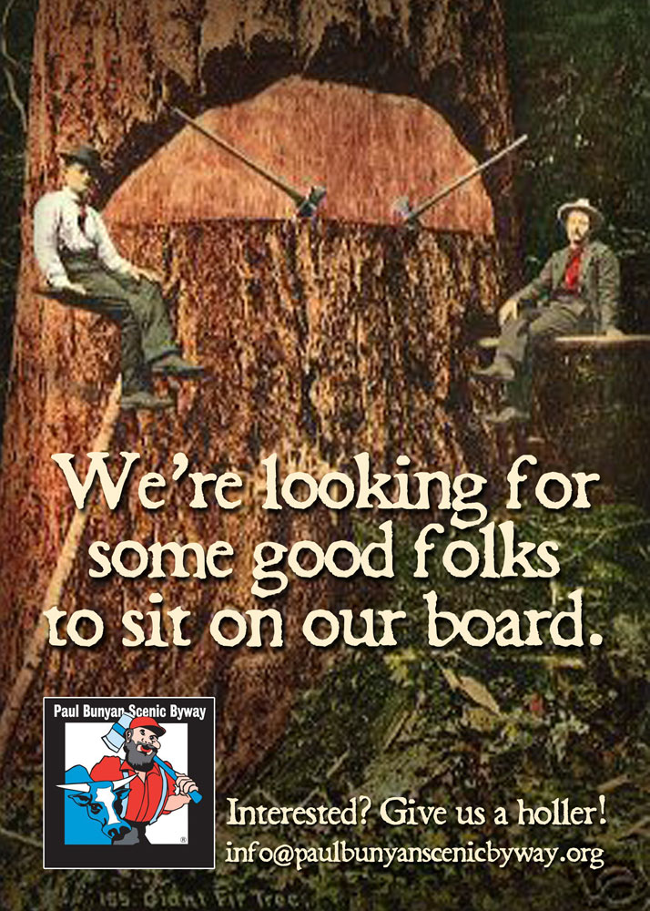 The Byway Association is driven by a group of volunteer board members that work closely with a variety of partners in the area. The board is currently looking for volunteers and additional board members. Meetings are quarterly. Want to get involved? Please Contact a board member by Email <info@paulbunyanscenicbyway.org> • ph: 218-543-4714 • mail to: PBSBA, PO Box 401, Pequot Lakes, MN 56472