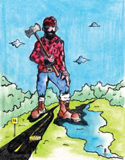 This Byway has been a well trod trail ever since me and Babe and the fellers first cleared it back in the day. We used the trails for totin' supplies back to the camps. When we moved on, some of those lumber camps turned into resorts, and the trails became full-fledged roads, for totin' building supplies and settlers and tourists. No wonder they called 'em tote roads.