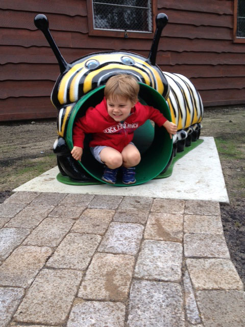 The life cycle of the monarch butterfly is transformed into playground fun with a Bunyan-sized representation of the chrysalis, caterpillar and butterfly; all perfect for learning while playing.
