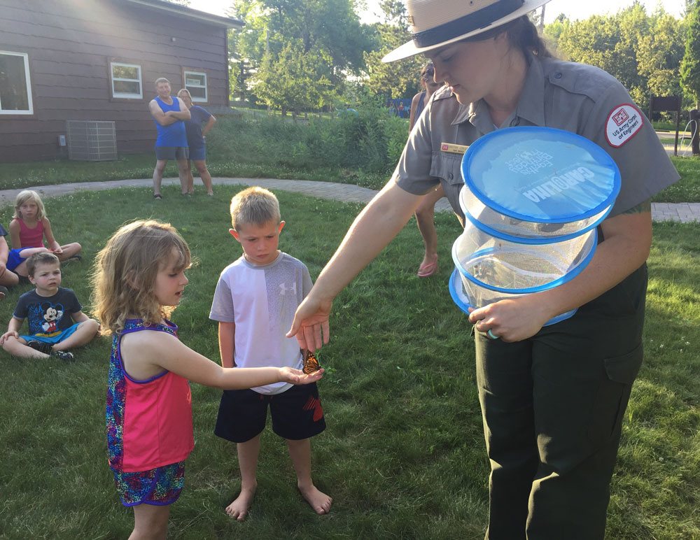 Jadyn Young & Brittny Condon, Cross Lake Recreation Area, Crosslake, MN conducted two Monarch Butterfly release programs into the established pollinator garden near the Cross Lake Office. A total of 61 people attended the programs.