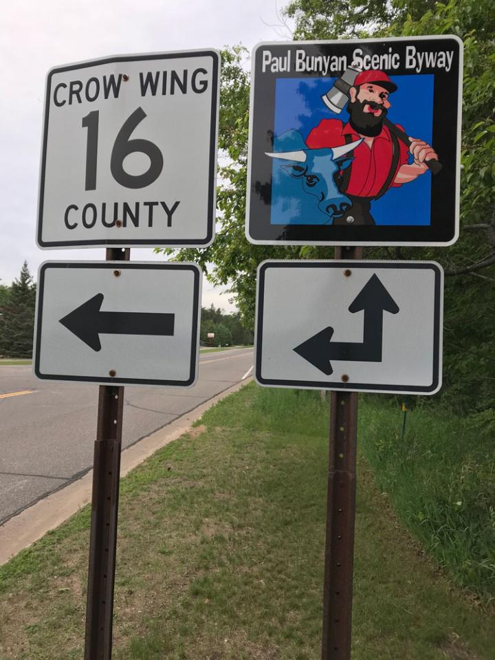 New Paul Bunyan Scenic Byway directional and route signage is installed along the country roads making up the Scenic Byway. Thanks for overseeing this signage upgrade project goes to: Minnesota Scenic Bywasy, MNDoT and Holly Slagle, MN Scenic Byway's Coordinator as well as PBSBA board members Lynn Scharenbroich and Rod Nelson. These new signs are compliant with improved sign refelctivity - especially helpful for wayfinding at all times of the day & night and in many varying weather conditions.