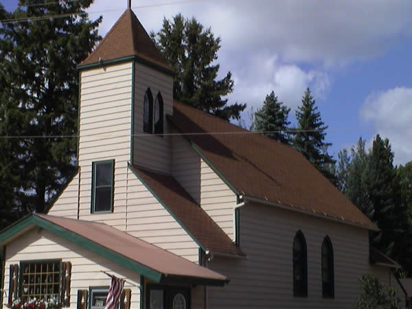 Located across from Scandia North, the little church was originally the German Lutheran Church, later the Pequot Lakes Baptist Church. The cornerstone was laid in 1908 and the building completed that same year. It's been many things over the years including a dance studio, a cabinet shop and a retail store. Today it's a spa. See this building on the first set of Paul Bunyan Scenic Byway playing cards.