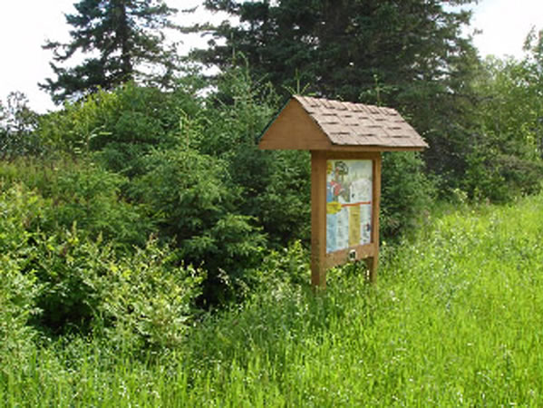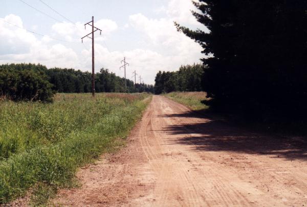 Now the railbed serves as a minimum maintenance road that loggers still use for hauling logs out of the many acres of woods north of CSAH 1. Look for the interpretive panel kiosk located on the south side of CSAH 1, and read how Ole the Blacksmith and Babe helped to cover 25 miles of railroad with just 1,000 feet of track.